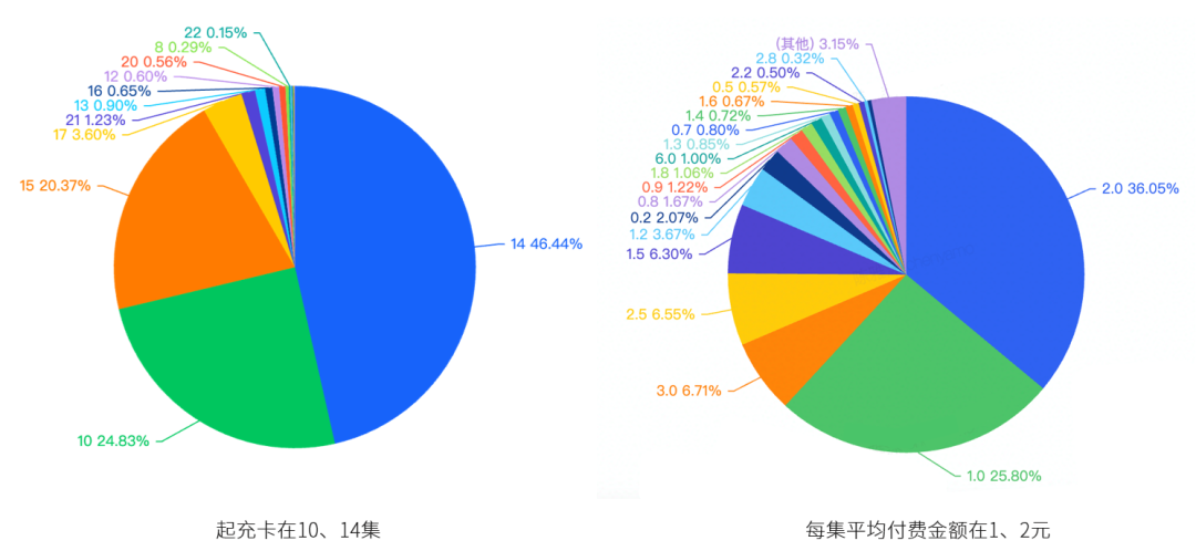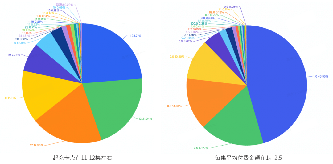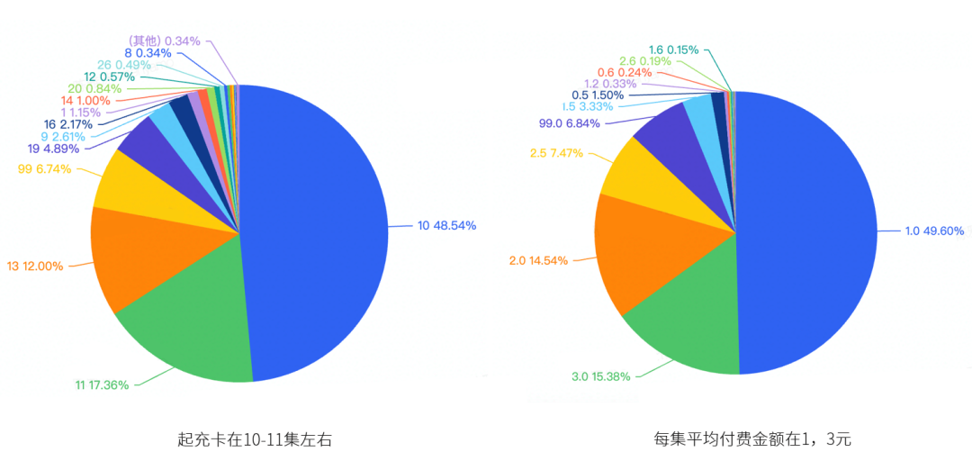 数据表现:该剧目前跑量过2000w,点击率10%、转化率5%,数据表现优异。起充卡点在10-11集,每集平均付费金额1,3元。