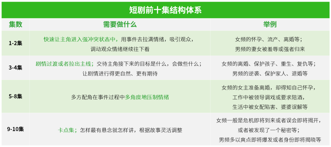同时,在短剧的结构体系中,每集的作用不同。把握每集的主要内容、发挥每集的作用,推动用户为精彩的短剧买单。